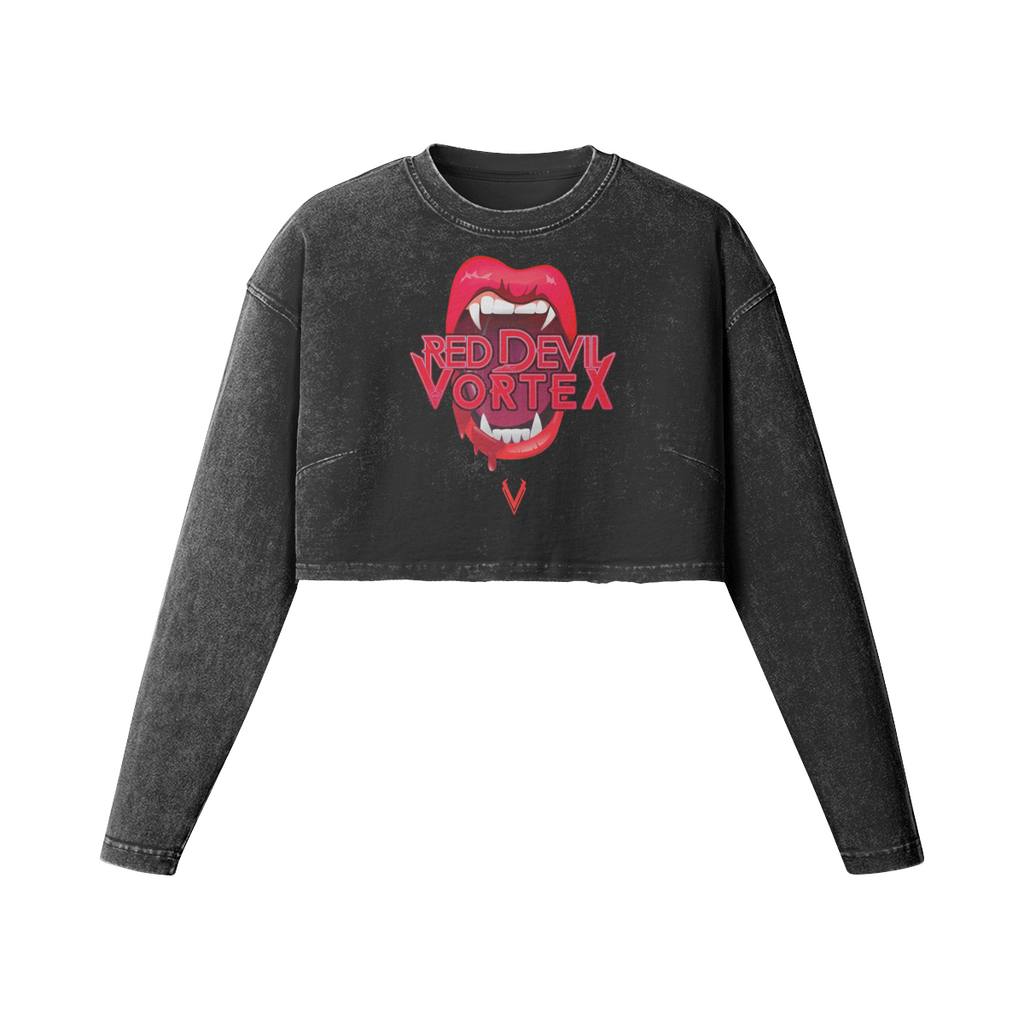 HEAVY CROPPED HOODIE - Red Devil Vamp Lady